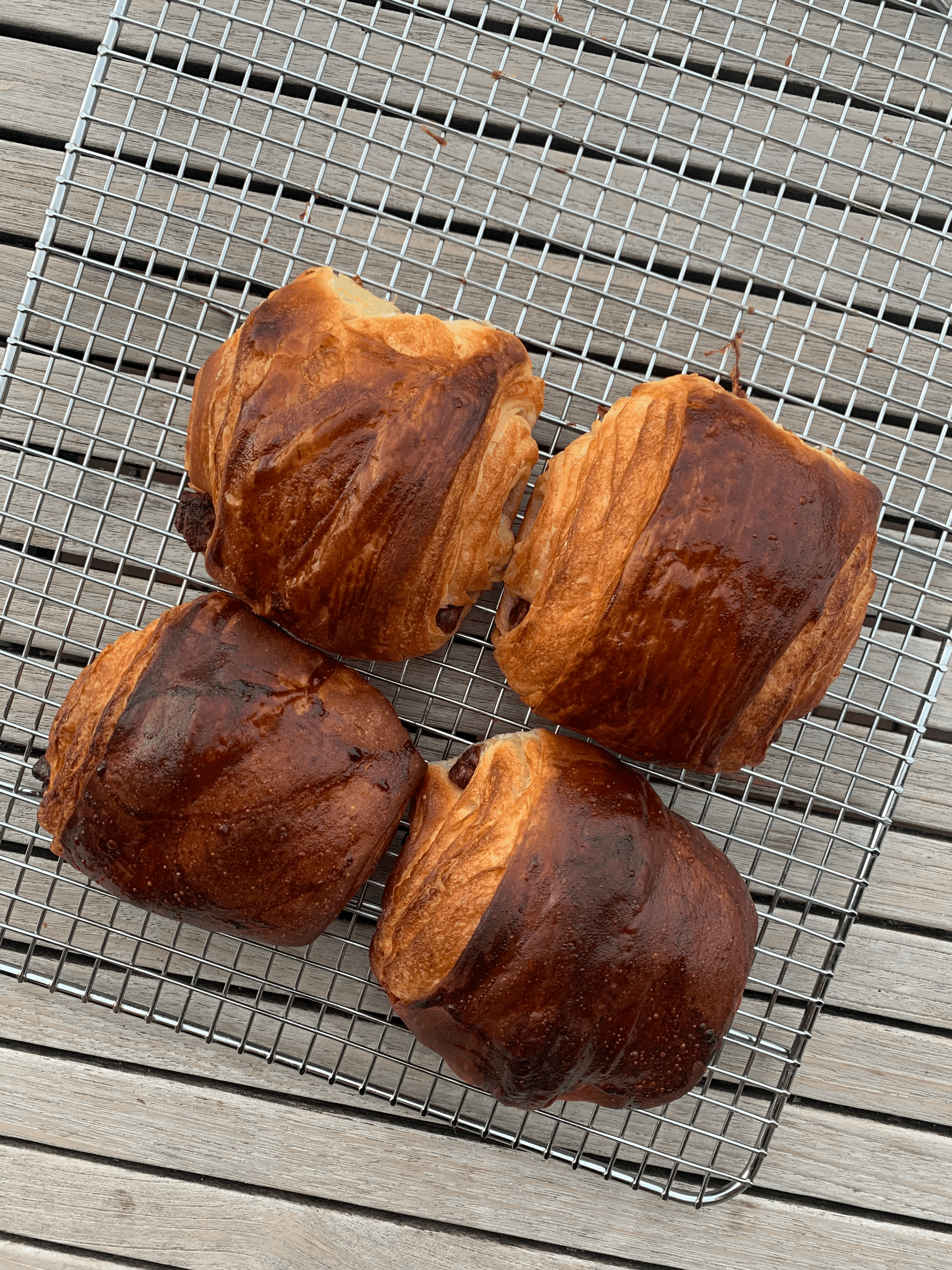 Ingredients: flour, butter, yeast, sugar, salt, milk, semi sweet chocolate, heavy cream, egg